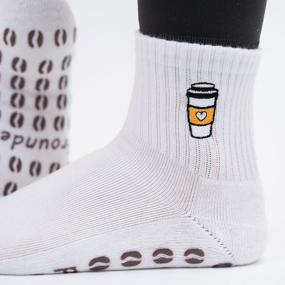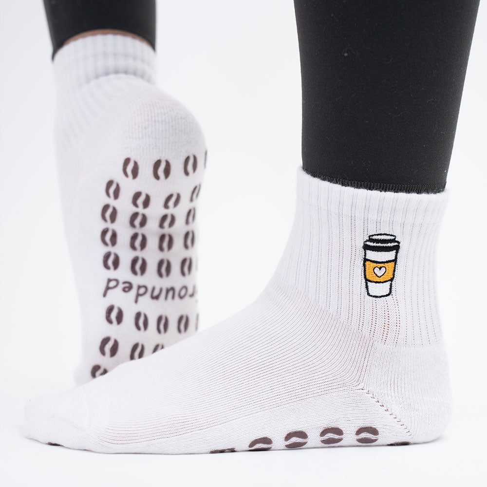 Start your Pilates session the way you start your day—energized and ready to go! Grounded’s Morning Brew grip socks feature a charming embroidered takeaway coffee cup on each sock, complemented by coffee bean-shaped grips on the soles for a strong, steady foundation. Designed for comfort, support, and a little extra motivation, they’re perfect for powering through your workout and connecting with your Pilates community.